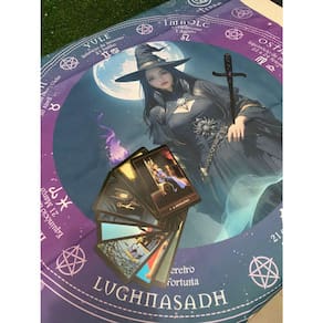 A Legítima Toalha Jogo Cartas Bruxa Wiccada Bialluz, é ótima para te auxiliar durante o jogo de cartas, por ser um elemento que proporciona alta elevação enérgica. Você também pode usar para decorar seu altar, com certeza ficara ainda mais lindo e com muita energia positiva. Nossa toalha possui altíssima qualidade na impressão com pontos de brilho e é confeccionada em tecido oxford que não amassa e tem longa durabilidade.