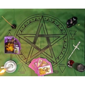 A Legítima Toalha Pentagrama Jogo de Cartas 70x70 cm Verde A Verdadeira e Tradicional Toalha de Mesa Pentagrama para jogos de cartas e Altar Esta é a Legítima Toalha de Mesa jogos de cartas, deixando sua mesa bonita, moderna e sofisticada e intuitiva. Desenvolvida pensando em deixar o seu jogo de cartas mais confortável e prático. É composta por tecido, linda estampa, o que oferece ainda mais requinte ao teu jogo. Boa Qualidade de impressão, podendo ser utilizada em altares, desenvolvida especialmente para jogos de cartas intuitivas. Características: - Composição: Tecido Oxford - Impressão: Silk Screen - Cor bem definida - - Tamanho: Quadrada 70 cm x 70 cm - Acabamento : Overlock - Extremamente leve, suave e confortável - Lavável em máquina Lava e Seca Imagens meramente ilustrativas