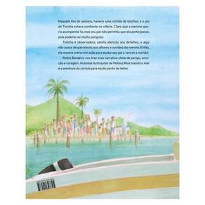 Naquele fim de semana, haveria uma corrida de lanchas, e o pai de Tininha estava confiante na vitória. Claro que a menina queria acompanhá-lo, mas seu pai não permitiu que ela participasse, pois poderia ser muito perigoso. Tininha é observadora, presta atenção aos detalhes, e algo não passa despercebido aos olhares e ouvidos da menina. Então, ela resolve entrar em ação para ajudar seu pai a vencer a corrida! Pedro Bandeira nos traz essa narrativa cheia de perigo, emoção e coragem. As lindas ilustrações de Mateus Rios trazem o mar e a aventura da corrida para muito perto do leitor. "Pedro escolhe enxergar o mundo pelos olhos de Tininha e, a partir de sua esperteza, constrói uma história para guardarmos no coração." – André Catarinacho