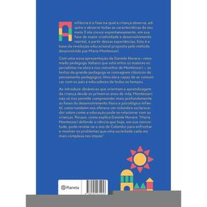 Uma obra clássica capaz de se comunicar com os pais e educadores de todos os tempos. A infância é a fase onde a criança observa, adquire e absorve todas as características do seu meio, crescendo de forma espontânea através dessas experiências dentro da sua fase de maior criatividade e desenvolvimento da mente. Essa é a base da revolução educacional proposta pelo método desenvolvido por Maria Montessori. Com uma nova apresentação por Daniele Novara – renomado pedagogo italiano que está entre os maiores especialistas na obra e nos conceitos de Montessori –, os textos da grande pedagoga se consagram como clássicos do pensamento pedagógico. Uma obra capaz de se comunicar com os pais e educadores de todos os tempos. Introduzindo dinâmicas que orientam a aprendizagem da criança desde os primeiros anos de vida, Montessori não só nos permite compreender mais profundamente as fases do desenvolvimento físico e psicológico da infância, como também nos oferece um vislumbre esclarecedor sobre a forma como a educação pode se relacionar com as crianças. Porque, como explica Daniele Novara: “Maria Montessori defende a ciência que hoje, em sua concretude, pode revelar-se o ovo de Colombo para enfrentar e resolver os problemas que uma sociedade cada vez mais complexa nos impõe”.