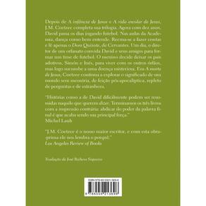 Neste último romance da série, o ganhador do Nobel J.M. Coetzee vai aos limites da forma narrativa e cria o mais potente e trágico volume da trilogia. Após anos buscando uma educação adequada para David, seus guardiões Simón e Inés seguem sem saber como direcionar a potência intelectual e espiritual do menino. A Academia de Música, na provinciana Estrella, parecia sugerir um caminho promissor, fora da rigidez do ensino tradicional. Mas um assassinato brutal interrompe o processo; a Academia é dissolvida, e Simón e Inés retornam ao dilema de como educar o jovem David. Certo dia, o menino é visto jogando futebol pelo dono de um orfanato local. David se encanta com a possibilidade de viver na instituição. Ele é voluntarioso, impulsivo, carismático, mas também frágil, e sua decisão de abandonar a própria casa dá início a uma série de episódios. Os primeiros dois volumes da trilogia do ganhador do Nobel J.M. Coetzee tinham se prestado a retratar um mundo ligeiramente distinto do nosso, em que a memória parece limitada, e a benevolência do Estado guiada por um racionalismo asséptico por vezes sinistro. Neste terceiro e último volume, este mundo, com sua lógica implacável, já não parece mais tão distante de nós, e Coetzee nos carrega por uma jornada existencial única, exigindo da ficção muito mais do que um mero comentário do presente.