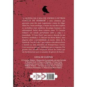 A QUEDA DA CASA DE USHER E OUTROS CONTOS DE HORROR" é uma coletânea que apresenta onze dos mais inquietantes contos de Edgar Allan Poe. Nesta antologia, o mestre do macabro explora os recônditos mais sombrios da psique humana e do sobrenatural. Inclui obras icônicas como "O Coração Delator", um estudo perturbador sobre a culpa e a insanidade; "O Gato Preto", que narra a descida de um homem à maldade; e "A Máscara da Morte Rubra", uma alegoria sobre a inevitabilidade da morte. Além de "A Queda da Casa de Usher", que explora a decadência física e mental em uma atmosfera de desesperança e terror. Com sua prosa precisa e habilidade para o suspense, Poe garante uma jornada arrepiante através de contos que são fundamentais para os amantes do gênero de horror. LISTA DE CONTOS: O Coração Delator / Manuscrito Encontrado em uma Garrafa / O Retrato Oval / O Poço e o Pêndulo / O Gato Preto /A Queda da Casa de Usher / O Barril de Amontillado / William Wilson / Os Fatos no Caso do Sr. Valdemar / O Enterro Prematuro / A Máscara da Morte Rubra