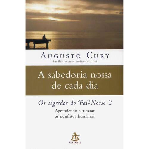 O Pai-Nosso é uma das orações mais recitadas em todo o mundo, mas poucas pessoas compreendem a profundidade das mensagens que ela traz. Com a intenção de desvendar os segredos ocultos nas palavras de Jesus e de revelar o poder transformador dessa prece, Augusto Cury escreveu a coleção Os segredos do Pai-Nosso. Embora os dois livros se complementem, eles podem ser lidos de forma independente, pois abordam temas distintos: o primeiro volume estuda as características de Deus e o segundo, A sabedoria nossa de cada dia, trata da personalidade humana, seus dilemas e conflitos.Nessa fascinante jornada, você vai descobrir a profunda visão de Jesus dos sentimentos humanos e conhecer algumas ferramentas indispensáveis ao equilíbrio, à saúde mental e à expansão dos horizontes da inteligência. Quando tomarmos consciência de que amor, alegria, tranqüilidade, compaixão, sonhos, autoconhecimento, auto-estima, tolerância e solidariedade são as nossas necessidades fundamentais, teremos colocado em prática a mensagem contida na oração que o Mestre dos Mestres nos ensinou.