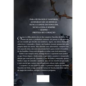 Para humanos e vampiros, as regras são as mesmas: nunca confie em ninguém, nunca ceda e sempre — sempre — proteja seu coração. A serpente e as asas feitas de noite é sucesso no TikTok e o primeiro volume da duologia Nascidos da noite, a saga inicial de Coroas de Nyaxia, uma romantasia repleta de magia das sombras, intrigas e romances perigosos. Oraya é a filha adotiva do rei dos vampiros Nascidos da Noite. Humana em meio a predadores naturais, ela passou a vida lutando em um mundo que desafia sua existência. A única chance que tem de sobreviver é vencendo o Kejari, um lendário torneio promovido pela própria deusa da morte. Mas derrotar seus adversários, vampiros das três casas do reino, não será um desafio simples e, para resistir à brutalidade das batalhas, Oraya será obrigada a se aliar a um rival misterioso. Raihn é um vampiro atroz, inimigo do rei e o oponente mais poderoso que Oraya encontra. Ainda assim, o que mais a assusta é a inesperada afeição que sente por ele. Quando a Casa da Noite é ameaçada, Raihn parece ser o único capaz de entender e ajudá-la, mas, em um mundo em que nada é mais mortal que o amor, essa relação pode colocar tudo a perder.