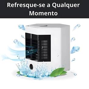A Solução Para Dias Quentes: Ar Condicionado Portátil Fique fresco e confortável. Perfeito para todas as estações do ano, pois funciona como ar-condicionado, purificador e umidificador de ar Você pode deixar em qualquer ambiente da casa, em escritórios, estabelecimentos, e onde você quiser Você pode fazer seus afazeres domésticos, deixar na mesa de estudos ou trabalho e se refrescar durante o verão. Possui botão para ligar ou desligar a luz de led que indica as velocidades. Para deixar o ambiente mais frio, molhe o filtro e coloque no congelador antes de usar A água do reservatório dura de 8 a 10 horas, dependendo da velocidade utilizada. Pode utilizar gelo também no reservatório.