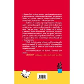 A Soma de Todos os Afetos traz a reunião das crônicas mais inspiradoras da autora, que abordam sobre sentimentos e percepções da vida, tão delicadamente desenhadas, que poderiam ser indicadas para quem busca entender as particularidades do nosso processo de amadurecimento emocional. Tradutora de emoções, a prosa poética apresentada é como uma janela que abre horizontes para pessoas sensíveis. É um toque de vida aos que procuram explicações sobre o sentir. É mãe que assopra a ferida do filho que caiu da bicicleta. O reencontro consigo mesma e o amor pelos seus são tão intensos que transformam letras em risos, frases em lágrimas, textos completos em simples suspiros. Seus parágrafos têm cor e cheiro. O livro todo é um grande abraço terno de reconciliação com a maturidade que a vida proporciona. Fabíola Simões é uma das melhores cronistas da nossa geração, pois tem a capacidade de conciliar conteúdo de extrema qualidade com a beleza estética de sua escrita. Afinal, a perfeição não mora longe da simplicidade. Definitivamente um livro para ler, reler e presentear quem amamos.