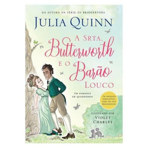 Um romance ilustrado irresistível e bem-humorado baseado no livro preferido dos Bridgertons. A extravagante aventura A Srta. Butterworth e o barão louco já apareceu em várias obras de Julia Quinn e encantou alguns de seus personagens mais amados. Agora você também vai poder ler essa deliciosa história de amor e perigo. Depois que quase toda sua família é tragicamente dizimada pela peste, Priscilla Butterworth só pode contar com a mãe e a avó. Mas uma série de infortúnios acaba separando-a também das duas. Mandada para viver com uma tia malvada, a jovem é forçada a trabalhar sem parar, até que não consegue mais suportar e foge, iniciando uma jornada cheia de reviravoltas. Agora Priscilla terá que usar toda a sua inteligência para sobreviver a diversas enrascadas, sem imaginar que uma delas colocará em seu caminho o amor de sua vida, o barão “louco”. Ilustrada por Violet Charles e contada na voz inconfundível de Julia Quinn, esta animada comédia ambientada no século XIX certamente vai conquistar os leitores de hoje.