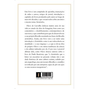 Este livro é um compêndio de apostilas, transcrições de aulas e cursos, artigos de jornal, introduções e capítulos de livros produzidos pelo autor ao longo de mais três décadas, e que versam todos sobre um único e mesmo tema: Aristóteles. Olavo de Carvalho dedicou muitos anos de sua vida ao estudo da obra do Estagirita, bem como aos comentários e desdobramentos contemporâneos de suas teses, o que contribuiu para que ele desenvolvesse a sua própria filosofia assentada nas bases da filosofia aristotélica. Assim, este livro vem a ser tanto uma introdução a Aristóteles como à sua redescoberta na atualidade a sua vingança , o que se dá na obra do próprio Olavo e em outras tendências da ciência e da cultura indicadas por ele. E por isso é possível afirmar dele, como Olavo dissera outrora sobre o livro de Émile Boutroux, que \"o Aristóteles que o leitor vai encontrar no presente volume não é um dado histórico de uma cultura extinta, exibido por um arqueólogo, mas um tesouro filosófico e científico revivificado por um intérprete capaz de pôr em ação os seus recursos inesgotáveis\". Ean: 9788595072244