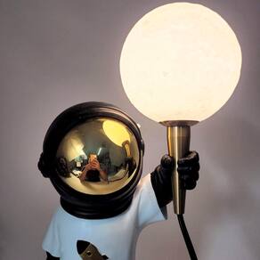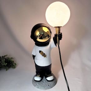 Abajur Astronauta Foguete Luminária De Mesa Decorativo 45cm Luminária Astronauta Pisando na Lua Inigual Decor A Luminária Astronauta Pisando na Lua é uma peça criativa e inspiradora que transforma a iluminação em arte. Representando um astronauta em pé sobre a superfície lunar, ele segura uma luminosa que remete a uma pequena lua ou estrela - como se estivesse trazendo luz diretamente do universo para o seu espaço. A luminosa é feita para ser retirada e encaixada facilmente na mão do astronauta, criando uma interação única e encantadora. Feita em resina de alta qualidade, essa luminária não só ilumina o ambiente, mas também adiciona um toque de imaginação e sofisticação à decoração. Principais Benefícios: Design Lúdico e Impactante: A figura do astronauta sobre a lua, segurando a luminosa, traz charme e criatividade para qualquer ambiente. Luminosa Removível: A parte luminosa pode ser retirada e encaixada novamente na mão do astronauta, permitindo uma interação divertida e única com a peça. Perfeita para Ambientes Criativos: Ideal para quartos, escritórios, espaços temáticos ou para quem é apaixonado pelo universo e pelo design diferenciado. Decoração com Funcionalidade: Além de iluminar, é uma escultura decorativa que se destaca na composição do ambiente. Especificações do Produto: Altura: 45 cm aproximadamente Largura: 18 cm aproximadamente Profundidade: 15 cm aproximadamente Peso: 1.270 g aproximadamente Material: Resina Alimentação: Tomada 127V Conteúdo da Embalagem: 1 Luminária Astronauta Pisando na Lua Cuidados e Embalagem: O produto é cuidadosamente embalado para garantir que chegue até você em perfeitas condições. Para mantê-lo sempre bonito, limpe com pano seco ou levemente umedecido. Evite o uso de produtos abrasivos ou exposição direta ao calor excessivo. Ilumine com Criatividade e Fantasia: A Luminária Astronauta Pisando na Lua é perfeita para quem deseja trazer um toque de magia do espaço para a decoração. Uma peça que vai além da iluminação - ela conta uma história e inspira sonhos. ATENÇÃO: As demais decorações e elementos nas imagens são meramente ilustrativos e não estão inclusos no anúncio.