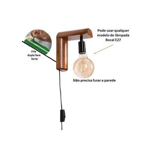 Feita em madeira de alta qualidade, a luminária é autoadesiva, permitindo uma instalação simples e rápida em qualquer parede. Sua capacidade para uma lâmpada e compatibilidade com diferentes tipos de fontes de luz, como LED, incandescentes e fluorescentes, garantem versatilidade e eficiência na iluminação do seu espaço.