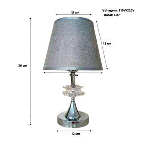 ABAJUR COM BASE CROMADA EM PLÁSTICO E CÚPULA EM LINHO 15X36CM BIVOLT - AL55013