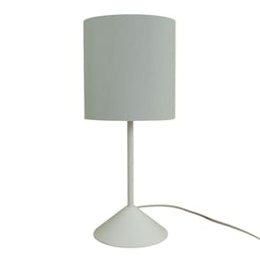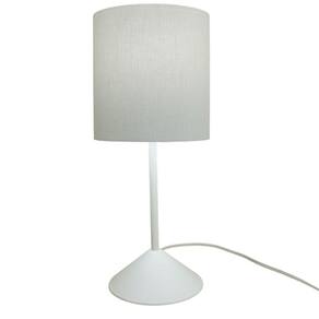 Abajur de mesa com base plástica na cor branca. Cúpula em tecido liso cinza claro.Base em material plástico. Cúpula medindo 14,5 cm x 15 cm.Altura total: 34 cm Largura total: 14,5 cm Bivolt Usar lâmpadas fluorescentes ou de LED. Fio branco com plug liga e desliga. Soquete E-27.Ficha técnica- Cor da base: Branco- Largura total: 14.5 cm- Diâmetro total: 14.5 cm- Altura total: 34 cm- Cores: branco e cinza- Cor do abajur: Cinza- Material da base: Plástico