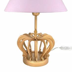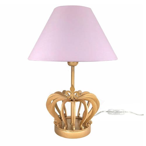 Este belo abajur de madeira é peça obrigatória na decoração de quartos infantis, que tenham estilo e bom gosto. Perfeito para ornamentar e proporcionar um efeito luminoso, que vai embalar o sono aconchegante dos pequenos Dados TécnicosAbajur com base de madeira dourada decorado com coroa e cúpula forrada com tecido. Lâmpadas SuportadasEconômicas/ LED: Qualquer LâmpadaIncandescente amarela : Até 40w por Soquete Medidas do AbajurDiâmetro da base: 17 cmAltura: 25 cm Medidas da CúpulaDiâmetro da Parte Debaixo: 20 cmDiâmetro da Parte de Cima: 8 cmAltura: 13 cmAltura Total: 35 cm