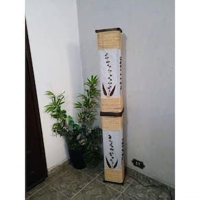 Abajur De Chão Piso Luminária Rustico De Madeira Corda Com Folhagens De 1,5 Metro Altura abajur de chão rústico de madeira de 1,5 metro de altura, feito em madeira de reflorestamento, com excelente acabamento em cordas de sisal e folhagens naturais sobre o tecido morim. Este abajur foi projetado para iluminar ambientes de forma eficaz, utilizando duas lâmpadas para uma iluminação intensa e homogênea. Ideal para uso residencial e em comércios, como restaurantes e SPAs, onde proporciona um toque de tranquilidade.Características:- Fabricante: fabricação própria.- Material: madeira de reflorestamento, sisal, morim e folhagens naturais secas.- Acabamento: pintura em Betume com aspecto envelhecido/rústico.- Lâmpada: utiliza lâmpada comum ou LED 110 ou 220 volts.- Quantidade de Lâmpadas: 2 (não inclusas).- Soquete: tipo E-27 de cerâmica.- Voltagem: de acordo com a lâmpada utilizada.- Dimensões: 18x22x150 cm (comprimento x largura x altura).- Peso: 3kg.Obs.: Acompanha 1,5 metro de cabo com plug e interruptor. Embalado em plástico-bolha e revestido por papelão. Nossas peças são artesanais e feitas sob encomenda, podendo ter pequenas variações. Marca: Não Informado