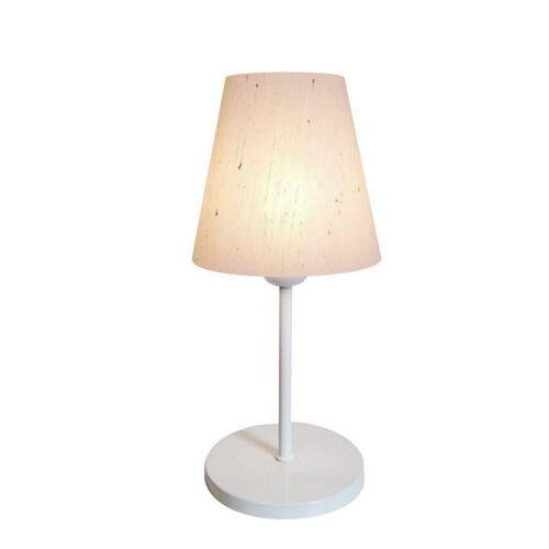 Abajur de Mesa Md-2005 Base Aluminio Branco Cúpula em Tecido Cone Linho Bege - Bivolt