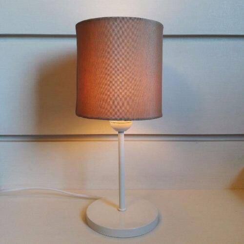 Abajur e Luminária de Cabeceira para Quarto e Sala Md-2010 Base Branca Cupula Tecido Cilindrica 14x15cm Palha