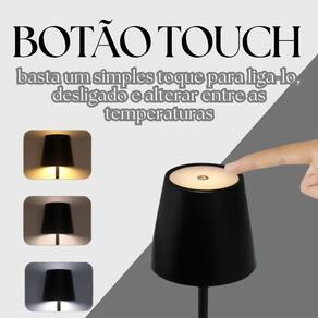Com três temperaturas de cor, quente, neutra e fria, ela oferece a iluminação ideal para cada momento do seu dia. Seja para relaxar, trabalhar ou estudar, você escolhe a luz perfeita com apenas um toque. O controle é totalmente touch: um clique na superfície liga ou muda a cor, e para ajustar a intensidade da luz, basta manter o toque pressionado após selecionar a cor desejada.