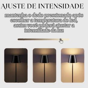 Com três temperaturas de cor, quente, neutra e fria, ela oferece a iluminação ideal para cada momento do seu dia. Seja para relaxar, trabalhar ou estudar, você escolhe a luz perfeita com apenas um toque. O controle é totalmente touch: um clique na superfície liga ou muda a cor, e para ajustar a intensidade da luz, basta manter o toque pressionado após selecionar a cor desejada.