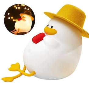 Abajur De Mesa Luminária Fofa Decoração Patinho De Silicone Abajur De Mesa Luminária Fofa Decoração Patinho De Silicone Luminária Patinho de Silicone com Chapéu - Luz Toque Colorido e Apoio de Celular Transforme o ambiente com essa luminária fofa, funcional e encantadora Com design de patinho e luz suave que muda de cor ao toque, a luminária Patinho é o item ideal para quartos infantis, presentes criativos ou uma decoração divertida e aconchegante. Além de iluminar, ela também serve como apoio de celular, com perninhas estáveis e um charmoso chapéu removível. Feita em gel de sílica, ABS e PC, é resistente, durável e segura para crianças - perfeita para quartos, salas ou escritórios Características Principais: Luz de LED colorida com sensor de toque