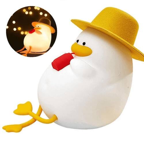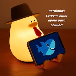 Luminária Patinho de Silicone com Chapéu - Luz Toque Colorido e Apoio de Celular
