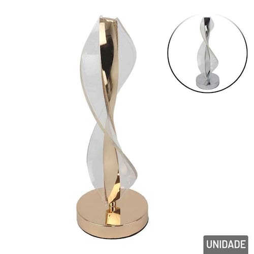 Abajur de Mesa Plástico Bivolt LED Espiral O Abajur de Mesa Plástico Bivolt LED Design em Espiral e Base de Metal Color é uma peça inovadora e cheia de estilo, ideal para quem busca uma iluminação moderna e eficiente. Com design exclusivo em espiral, o Abajur oferece uma luz Forte e difusa, no tom Branco Frio, criando um ambiente acolhedor e contemporâneo. Sua base de metal proporciona estabilidade e um toque de sofisticação, enquanto o corpo de plástico com acabamento metálico adiciona um charme deslumbrante à decoração. Equipado com tecnologia LED, o Abajur é bivolt, garantindo versatilidade e eficiência energética. Perfeito para mesas de cabeceira, escritórios ou qualquer ambiente que precise de um toque de modernidade e praticidade. Compacto e funcional, este abajur combina estética e economia de energia, sendo a escolha ideal para quem busca um item de iluminação único e moderno.\nEspecificações: Marca : FWB Tipo de material : Componentes Eletrônicos, Metal, Plástico Cores ou Estampa : Color Dimensões do Produto : 34 X 12 X 12 CM Peso Bruto (Gramas) : 0.659 O que vem na embalagem 1 Abajur de Mesa Plástico Bivolt LED Espiral Color Marca: Não Informado