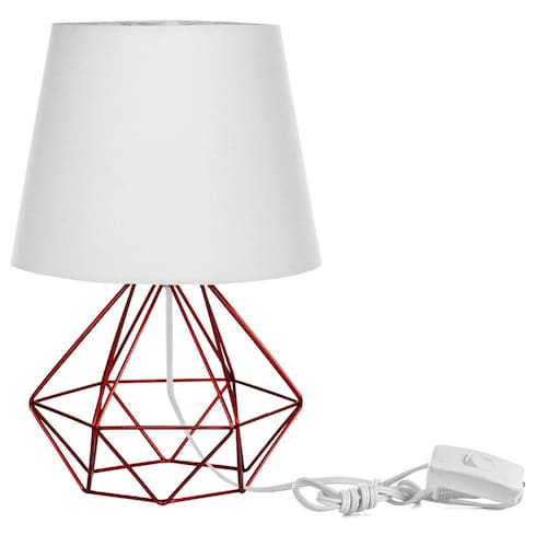 Abajur Diamante Dome Branco Com Aramado Cereja