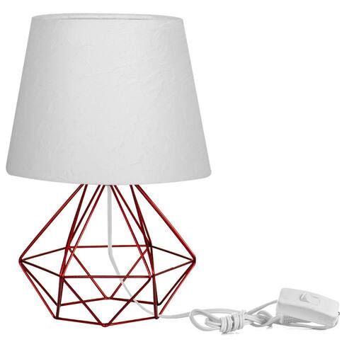 Abajur Diamante Dome Branco Texturizado Com Aramado Cereja