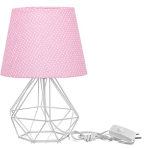 Abajur Diamante Dome Rosa/bolinha Com Aramado Branco