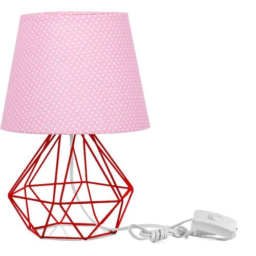 Abajur Diamante Dome Rosa/bolinha Com Aramado Vermelho