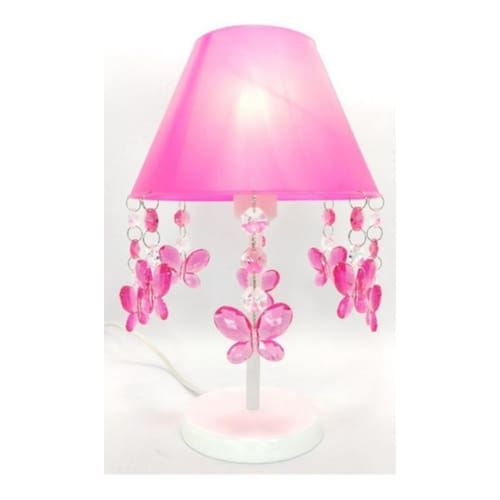 Abajur e lustre infantil quarto de menina bebê borboletas Especificações lustre: - base plafon octogonal de 17 cm em acrílico na cor branca. - castanhas de acrílico transparente. - borboletas de acrílico cor rosa. - altura do lustre 25 cm. - voltagem: bivolt 127v 220v - lustre enviado montado pronto para instalação. Lâmpada não inclusa. Especificações abajur: - cúpula de polipropileno plástico resistente na cor rosa pink; - base em acrílico branco - haste de acrílico branco - pingentes borboletas na cor rosa pink; - argolas de inox, castanhas de acrílico transparente de alto brilho; - altura total do abajur 30 cm - diâmetro maior da cúpula mede 17 cm - soquete para lâmpadas modelo e-27 bivolt aceita lâmpadas 110v e 220v Usar lâmpada de no máximo 40w lâmpada não incluso atenção mamãe grande por tempo limitado Marca: Não Informado