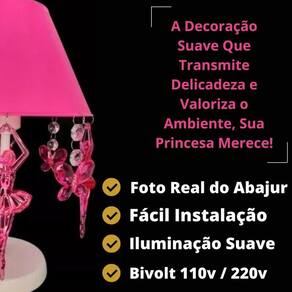 Lindo Abajur Infantil de Borboletas e Bailarinas Rosa Pink
