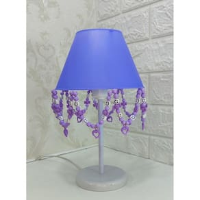 Artesanal, design moderno, ideal para decoração de quarto de crianças, bebê, ilumina muito bem e realça o ambiente. Especificações abajur: - cúpula de polipropileno plástico resistente na cor lilás; - base em acrílico branco; - haste de acrílico branco; - pingentes de coração lilás, pedrinhas roxas, emojis; - altura total do abajur 30 cm; - diâmetro maior da cúpula mede 17 cm; - soquete para lâmpadas modelo e-27 bivolt aceita lâmpadas 110v e 220v ; - usar lâmpada de no máximo 40w lâmpada não incluso ; - importante: imagens reais do produto, porém as cores dos pingentes e pérolas podem variar de acordo com cada produto fabricado, conforme disponibilidade Do atenção mamãe grande por tempo limitado Marca: Não Informado