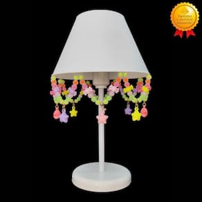 Abajur Infantil Estrelas Decoração Bolinhas Neon Branco