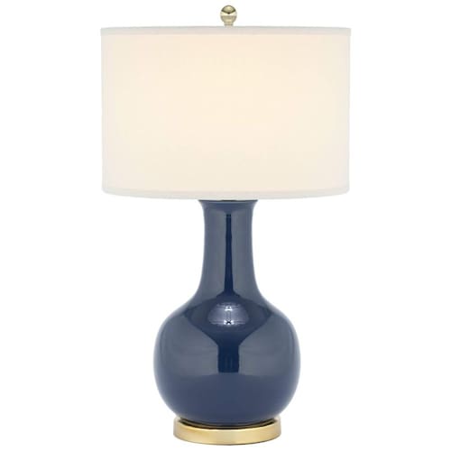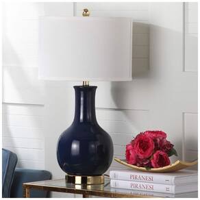 A luminária de mesa Safavieh Lighting Paris é uma peça elegante e sofisticada que adiciona um toque de classe a qualquer ambiente. Seu corpo é confeccionado em cerâmica esmaltada na sofisticada cor azul marinho, complementado por um pescoço e base de metal dourado que realçam o design requintado.