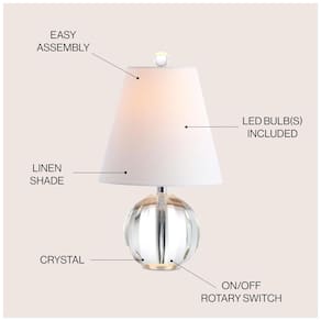 Base da Lâmpada: E26 Dimensões do Produto: 22,86 cm x 22,86 cm x 40,64 cm Peso do Item: 4,31 quilos Estilo: Glam, Transicional, Tradicional Cor: Transparente Potência: 40 watts Brilho: 420 Lúmens Código UPC: 840011400242 Número do Modelo: JYL2079A Marca: Não Informado