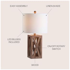 Cada design da Jonathan Y é elaborado com uma atenção meticulosa aos detalhes, utilizando apenas componentes da mais alta qualidade. Com sede no Soho, Nova York, o designer Jonathan e sua equipe criam decorações de casa que são ao mesmo tempo sofisticadas e acessíveis. O abajur possui um tambor de capa dura 100% linho branco, cordão de seda preta e prateada de 60 cm com plugue padrão EUA de 2 pinos.