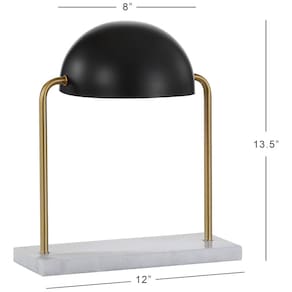 Este abajur moderno, inspirado no estilo Art Deco, traz um toque de sofisticação com seu acabamento metálico em latão dourado e design minimalista. A luz é direcionada para baixo por meio de um abajur de metal preto com acabamento fosco, montado sobre uma base de mármore. Perfeito para mesas e escrivaninhas, essa luminária adiciona um charme elegante a qualquer ambiente.
