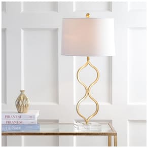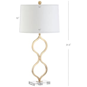 Esta luminária de mesa é uma peça de requinte e sofisticação, destacando-se com seu design de metal curvo com acabamento em folha de ouro. O pedestal de cristal oferece um toque tradicional, enquanto o acabamento em ferro dourado remete ao clássico. A cúpula de tambor em linho branco combina harmoniosamente com diversos estilos de decoração, acrescentando um toque de elegância.