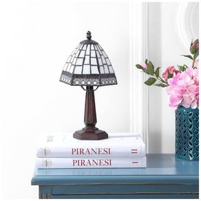 Adicione um toque de elegância clássica à sua sala de estar com este deslumbrante abajur inspirado na Tiffany. Cada peça de vidro, em tons quentes de marfim, emite uma luz suave e acolhedora, enquanto a borda geométrica em âmbar projeta um encantador padrão de luz nas paredes ao redor. Embora inspirado no design tradicional, este abajur é modernizado com um interruptor liga/desliga na parte superior e um cabo envolto em seda, além de ser compatível com lâmpadas LED.