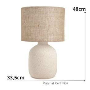 Abajur Luminária Em Cerâmica e Fibra Natural 18269 48x33,5cm