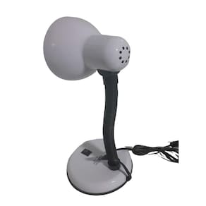 Luminária de mesa com base e interruptor. Cabo: 75 cm Material da luminária: metal rígido Medida: 30 cm Fonte: tomada de dois pinos. Bucal: e-27 padrão Lâmpadas: qualquer uma de até 40 watts