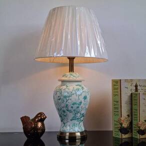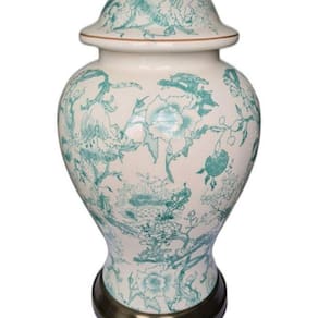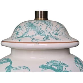 Este abajur possui tamanho harmônico compatível com ambiente, design moderno, da linha importada Flowers, base de porcelana na cor Branca e estampa floral na cor verde, pés resistente em metal na cor dourado escuro e com excelente aderência a superfície.