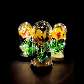 As luzes de led na cor amarela dão um toque mágico à peça, criando uma atmosfera aconchegante e acolhedora. Para sua comodidade, a luminária já vem com 2 baterias 2032 inclusas, prontas para uso.