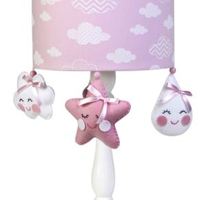 Este belo abajur de madeira é peça obrigatória na decoração de quartos infantis, que tenham estilo e bom gosto. Perfeito para ornamentar e proporcionar um efeito luminoso, que vai embalar o sono aconchegante dos pequenos Dados Técnicos Abajur com base de madeira torneada, pintura laqueada branca, cúpula forrada com tecido e decoração em Feltro Lâmpadas Suportadas Econômicas/ LED: Qualquer Lâmpada Incandescente amarela : Até 40w por Soquete Medidas do Abajur Diâmetro da base: 12,5 cm Altura: 30 cm Medidas da Cúpula Diâmetro: 20,5 cm Altura com Decoração: 31 cm Altura Total: 44 cm