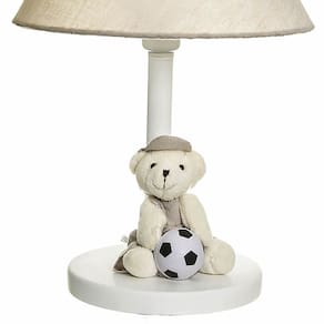 Este belo abajur de madeira é peça obrigatória na decoração de quartos infantis, que tenham estilo e bom gosto. Perfeito para ornamentar e proporcionar um efeito luminoso, que vai embalar o sono aconchegante dos pequenos Dados Técnicos Abajur com base de madeira decorado, pintura laqueada e cúpula forrada com tecido. Algumas peças da decoração do abajur podem variar de acordo com a disponibilidade no momento. Lâmpadas Suportadas Econômicas/ Led: Qualquer Lâmpada Incandescente amarela : Até 40w por Soquete Medidas Largura: 25 cm Altura com a cúpula: 35 cm Marca: Não Informado