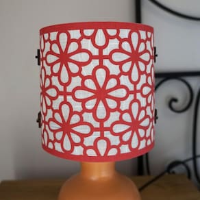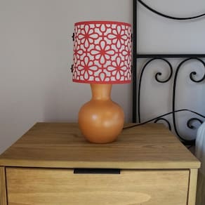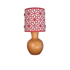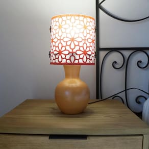 Ficha técnica - Cores: Cerâmica e vermelho - Largura total: 15 cm - Cor do abajur: Bege - Altura total: 31 cm - Cor da base: Terracota - Diâmetro total: 15 cm