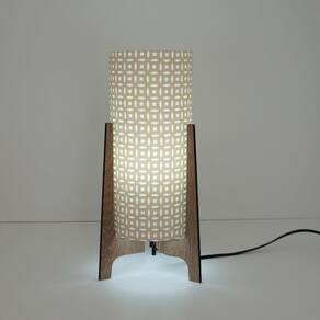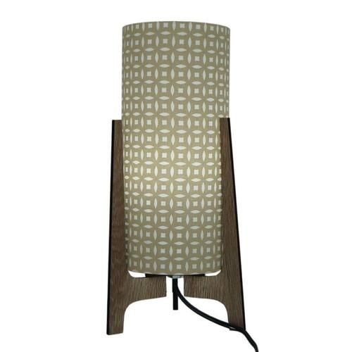 Abajur Tripé Madeira E Cúpula Arabescos Bege 32 Cm X 15 CmAbajur com base em madeira recortada a laser na cor marrom. Modelo tripé. Cúpula revestida com tecido arabescos bege. Cúpula medindo 25 cm de altura x 12 cm de diâmetro. Características:Dimensões do produto:Altura total base + cúpula: 32 cm Largura total: 15 cm Cor: Marrom e begeAplicação: MesaNº de lâmpadas: 1 - não inclusaMaterial: Base e estrutura em MDF. Cúpula em tecido.Tipo de lâmpada: LED ou Fluorescente. Soquete E27 Voltagem: Bivolt