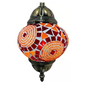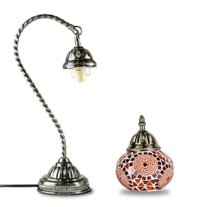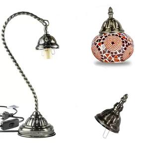 Lindo Abajur de mesa decorativo Turco, com suporte de metal bronzeado e cúpula circular artesanal em mosaico de vidros.