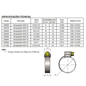 As abraçadeiras de rosca sem fim foram desenvolvidas para a maioria das utilizações industriais e instruídas para cobrir uma ampla variação de diâmetros, podendo com isto, compensar variações de diâmetros dos bocais e mangueiras.