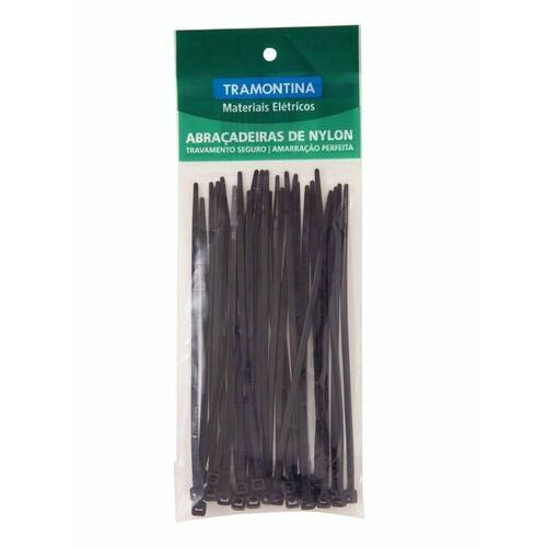 Com a Abraçadeira de Nylon 202x3,7x1,5 mm Tramontina Preta você terá maior praticidade para organizar os fios e cabos do seu ambiente. Ela é muito flexível e por ser produzida em nylon antichama, ainda garante alta resistência e durabilidade. A escolha perfeita para fazer parte dos seus itens de manutenção!